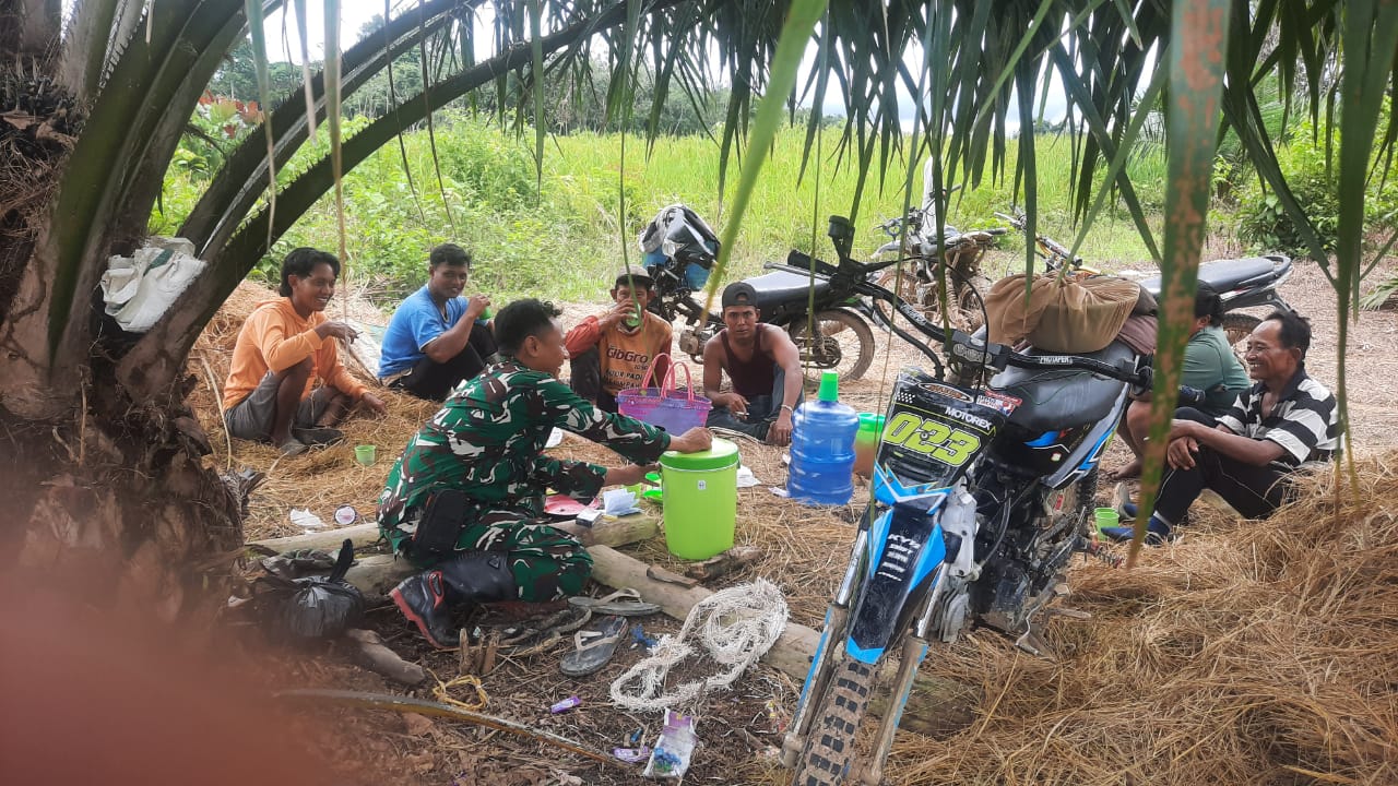 Kegiatan ini berlangsung di area persawahan milik warga Desa Sembatu Jaya, saat para petani tengah beristirahat dari rutinitas bertani. Momen santai tersebut dimanfaatkan oleh anggota Babinsa untuk berdialog langsung, mendengarkan keluh kesah petani, serta memberikan semangat dan motivasi.