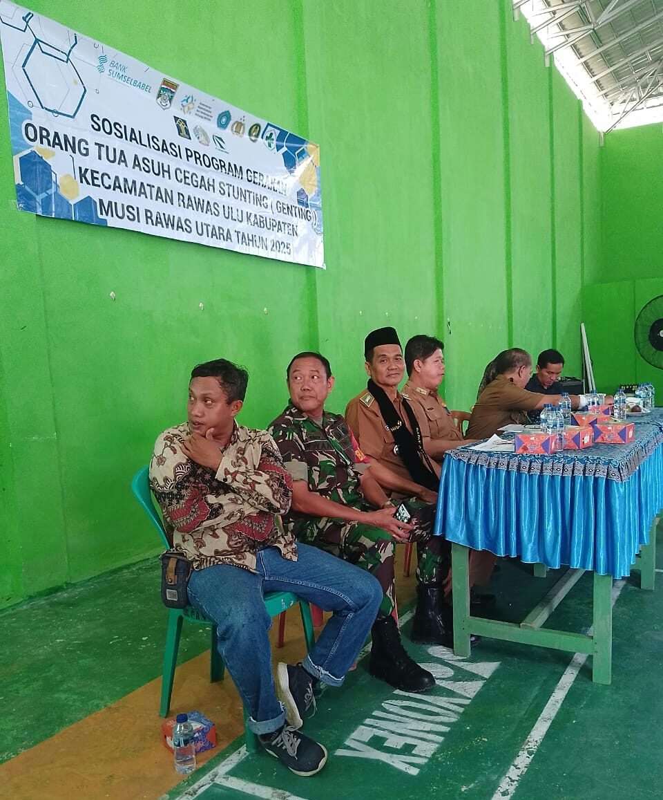 Serma Irawan, Babinsa dari Koramil 406-01/Rawas Ulu, turut menghadiri kegiatan sosialisasi Program Gerakan Orang Tua Asuh Cegah Stunting (GENTING) yang diselenggarakan di Kecamatan Rawas Ulu, Kabupaten Musi Rawas Utara.