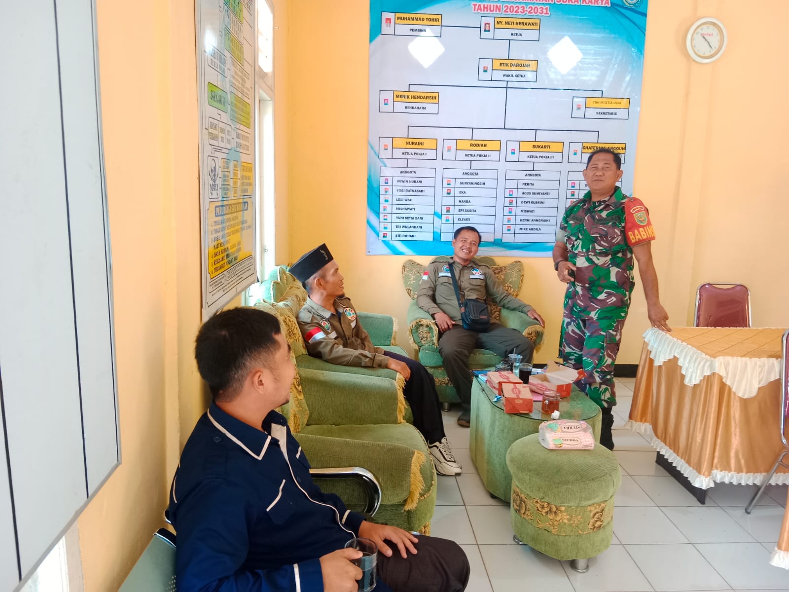 Kegiatan komsos ini merupakan bagian dari upaya pembinaan teritorial yang rutin dilakukan oleh Babinsa di wilayah binaan. Dalam suasana santai dan penuh keakraban, Sertu M. Daud berdialog langsung dengan warga, membahas berbagai hal seperti kondisi keamanan lingkungan, kegiatan gotong royong, serta upaya menjaga ketahanan pangan dan kebersihan desa.