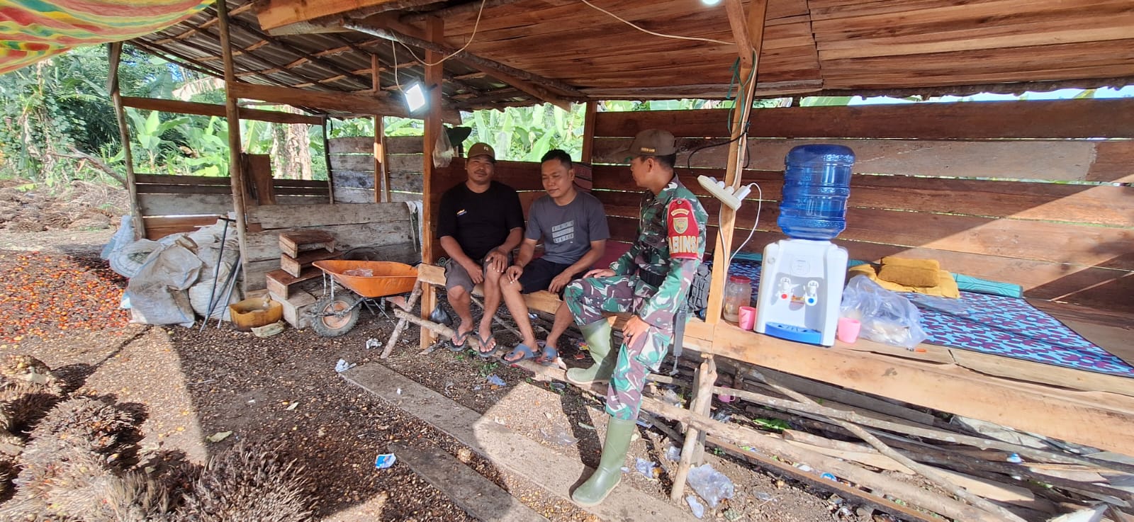 Dalam rangka mempererat hubungan dengan masyarakat, Serda Febri Yanto Babinsa Koramil 406-03/Rupit melaksanakan kegiatan komunikasi sosial (komsos) bersama warga binaannya di Desa Embacang Lama, Kecamatan Karang Jaya, Kabupaten Musi Rawas Utara, Sabtu (21/6/2025).