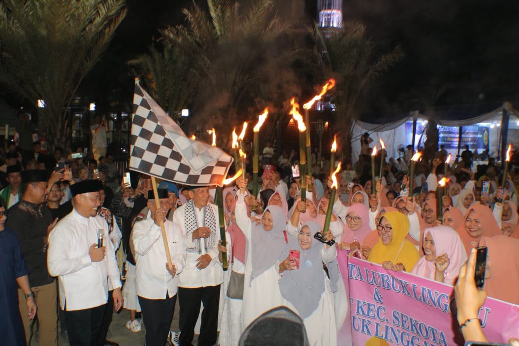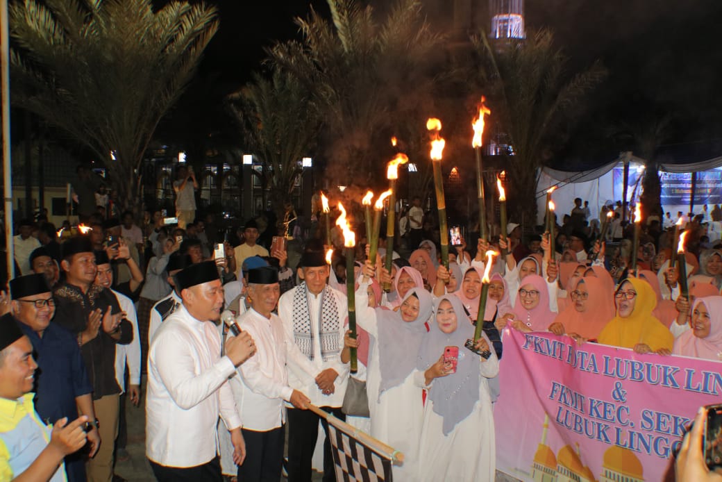 Lubuklinggau, 26 Juni 2025, Dalam rangka menyambut Tahun Baru Islam 1 Muharram 1447 H, Pemerintah Kota Lubuklinggau menggelar acara pelepasan pawai obor yang berlangsung meriah di Taman Kurma Alun-Alun Kota Lubuklinggau pada Kamis malam.