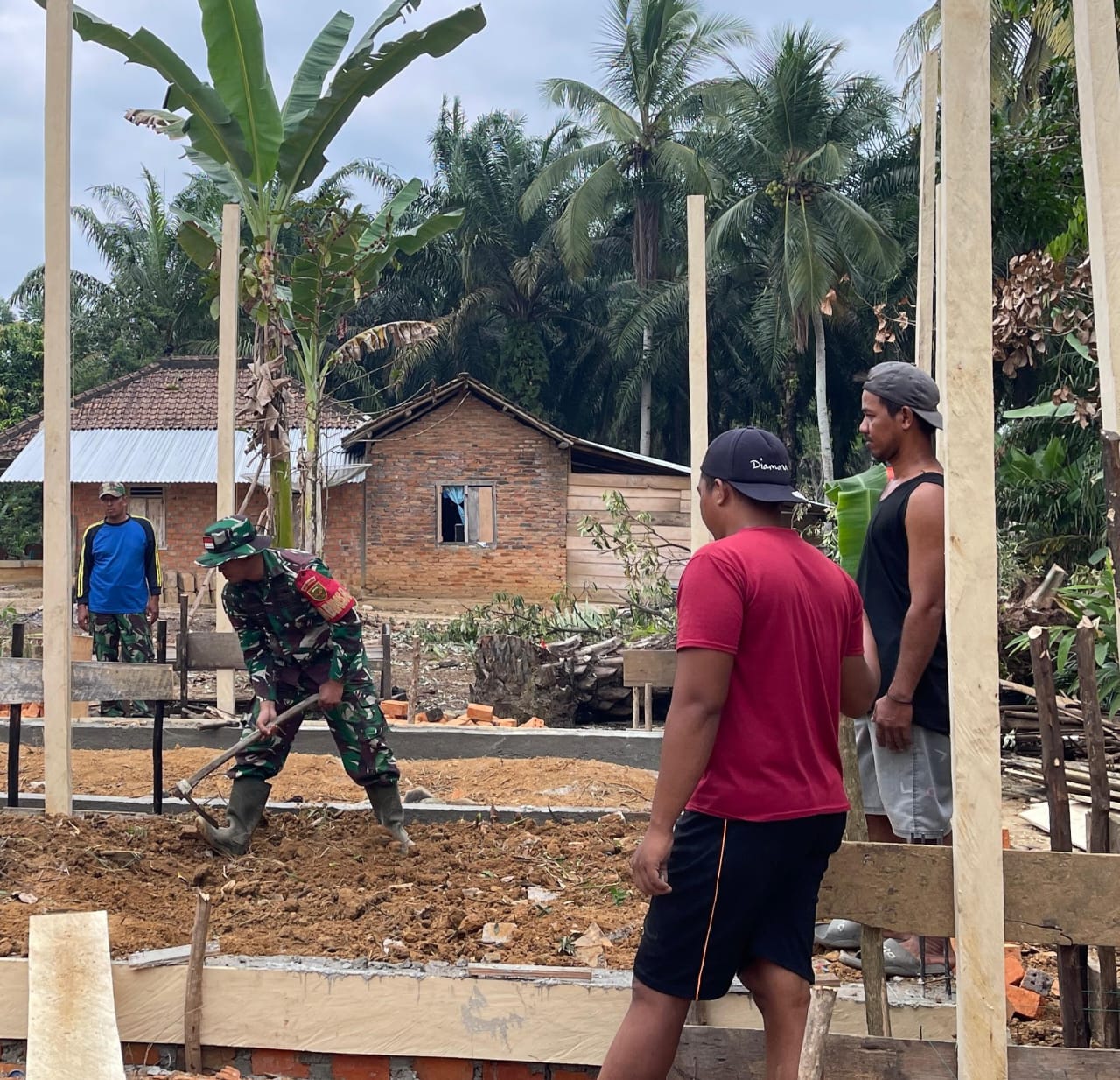 TNI Manunggal Membangun Desa (TMMD) ke-125 Kodim 0406/Lubuklinggau Bersinergi dengan Masyarakat Bangun Rumah di Desa Kota Baru SP 7 Cecar