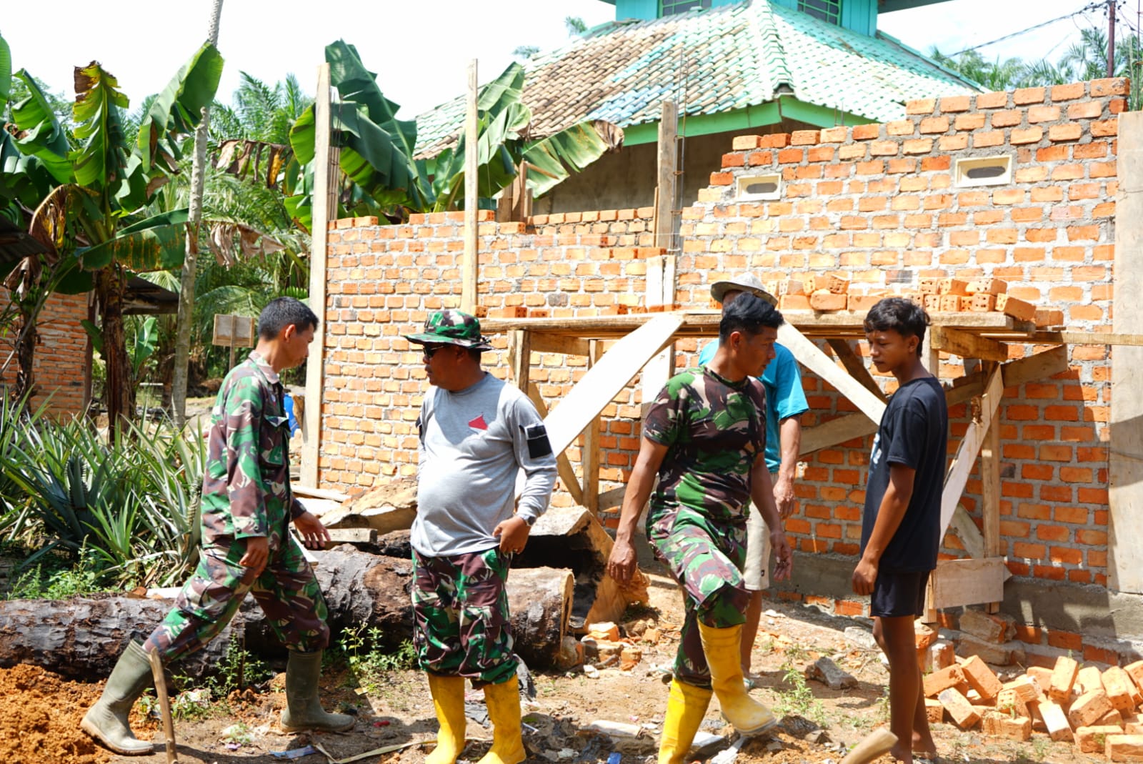 PASTI TER KODIM 0406/LUBUKLINGGAU KAPTEN INF JATI PRIYONO TINJAU PEMBANGUNAN RUMAH TMMD DI DESA KOTA BARU SP 7 CECAR