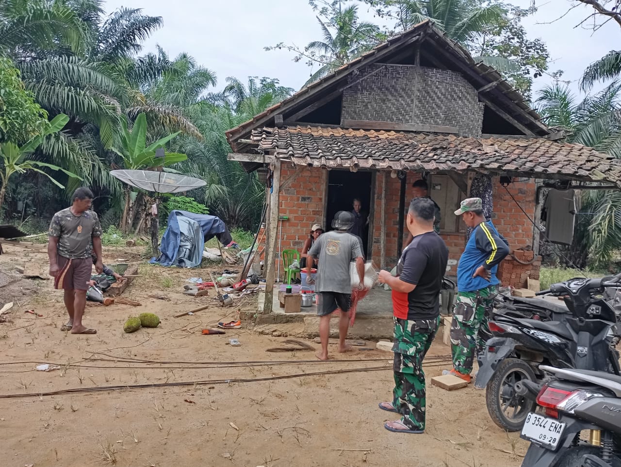 SATGAS TMMD KE-125 KODIM 0406/LUBUKLINGGAU DISTRIBUSIKAN MATERIAL PEMBANGUNAN RUMAH LAYAK HUNI DAN MCK DI DESA KOTA BARU SP 7