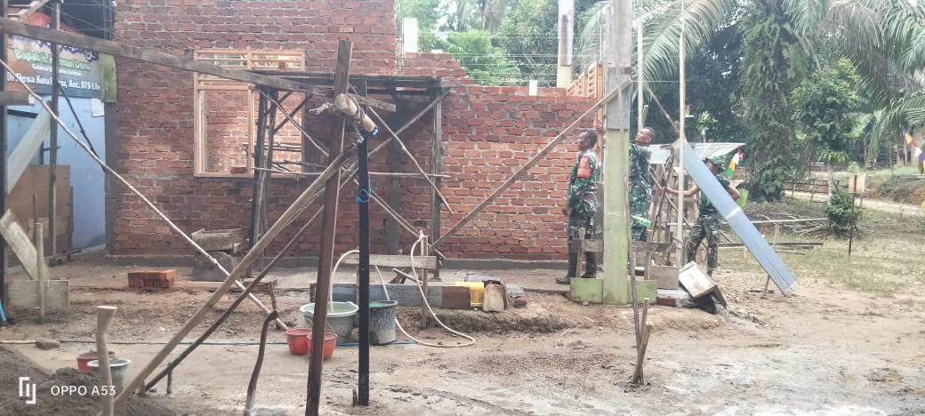 Sertu Efriyanto, yang menjabat sebagai Kepala Tukang dalam pembangunan RLH ini, memimpin langsung pelaksanaan pengerjaan di lapangan. Dengan pengalaman dan dedikasinya, ia mengkoordinasikan personel TNI bersama warga setempat untuk mempercepat proses pembangunan rumah yang ditujukan bagi warga kurang mampu.