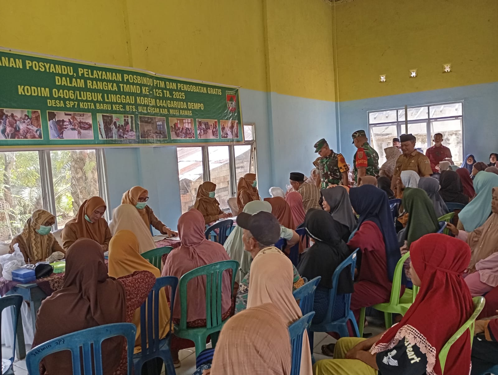 Lensa Garuda-Musi Rawas, Selasa 5 Agustus 2025, Dalam rangka mendukung program TNI Manunggal Membangun Desa (TMMD) ke-125, Satgas TMMD Kodim 0406/Lubuklinggau bersama instansi terkait menggelar kegiatan Pos Pembinaan Terpadu Penyakit Tidak Menular (Posbindu PTM) di Desa Kota Baru SP 7, Kecamatan BTS Ulu, Kabupaten Musi Rawas.