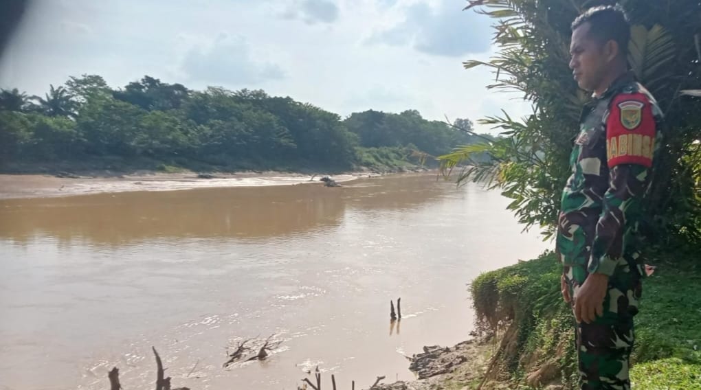 Babinsa Koramil 406-06/Tugumulyo Aktif Lakukan Pengecekan Air Sungai untuk Antisipasi Banjir