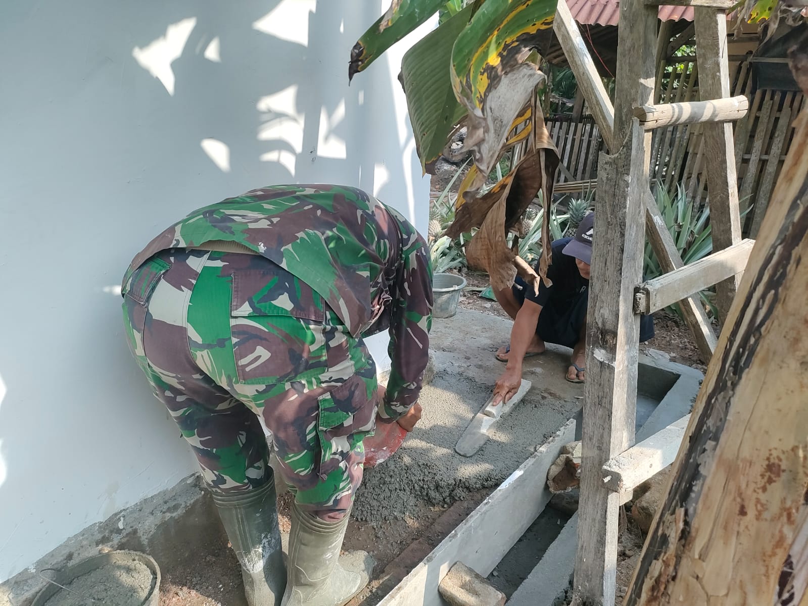 Pekerjaan dilakukan secara gotong royong, mengedepankan semangat kebersamaan antara personel TNI dan warga setempat. Proses perehaban ini bertujuan untuk memperbaiki fasilitas ibadah agar lebih nyaman dan layak digunakan oleh masyarakat.