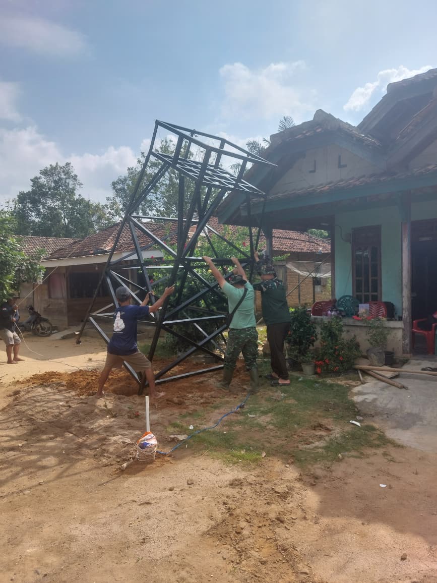 Lensa Garuda-Musi Rawas, 15 Agustus 2025, Dalam rangka mewujudkan kemanunggalan TNI dan rakyat serta mendukung program TNI Manunggal Membangun Desa (TMMD) ke-125, personel Satgas TMMD Kodim 0406/Lubuklinggau bersama masyarakat melaksanakan kegiatan gotong royong pemasangan tower air di Desa Kota Baru SP 7, Kecamatan BTS Ulu, Kabupaten Musi Rawas.