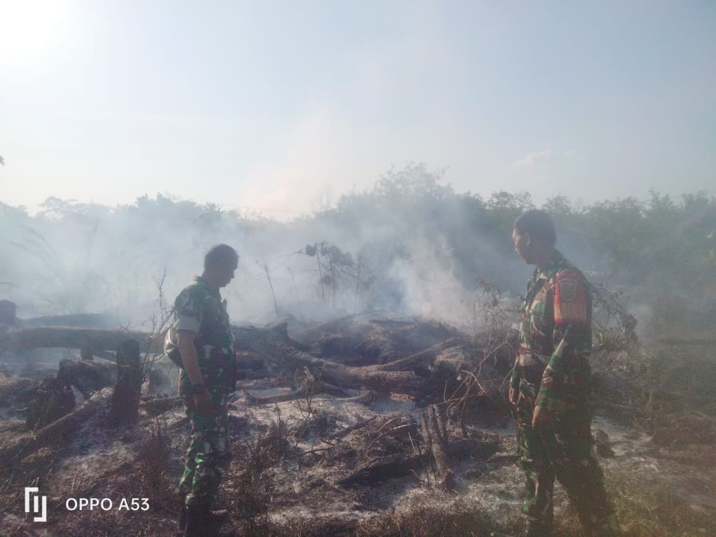 Setelah dilakukan pengecekan, ditemukan adanya sisa pembakaran lahan yang masih mengeluarkan asap ringan. Babinsa segera berkoordinasi dengan pihak desa dan masyarakat untuk melakukan pemadaman manual serta memastikan tidak ada potensi api meluas.