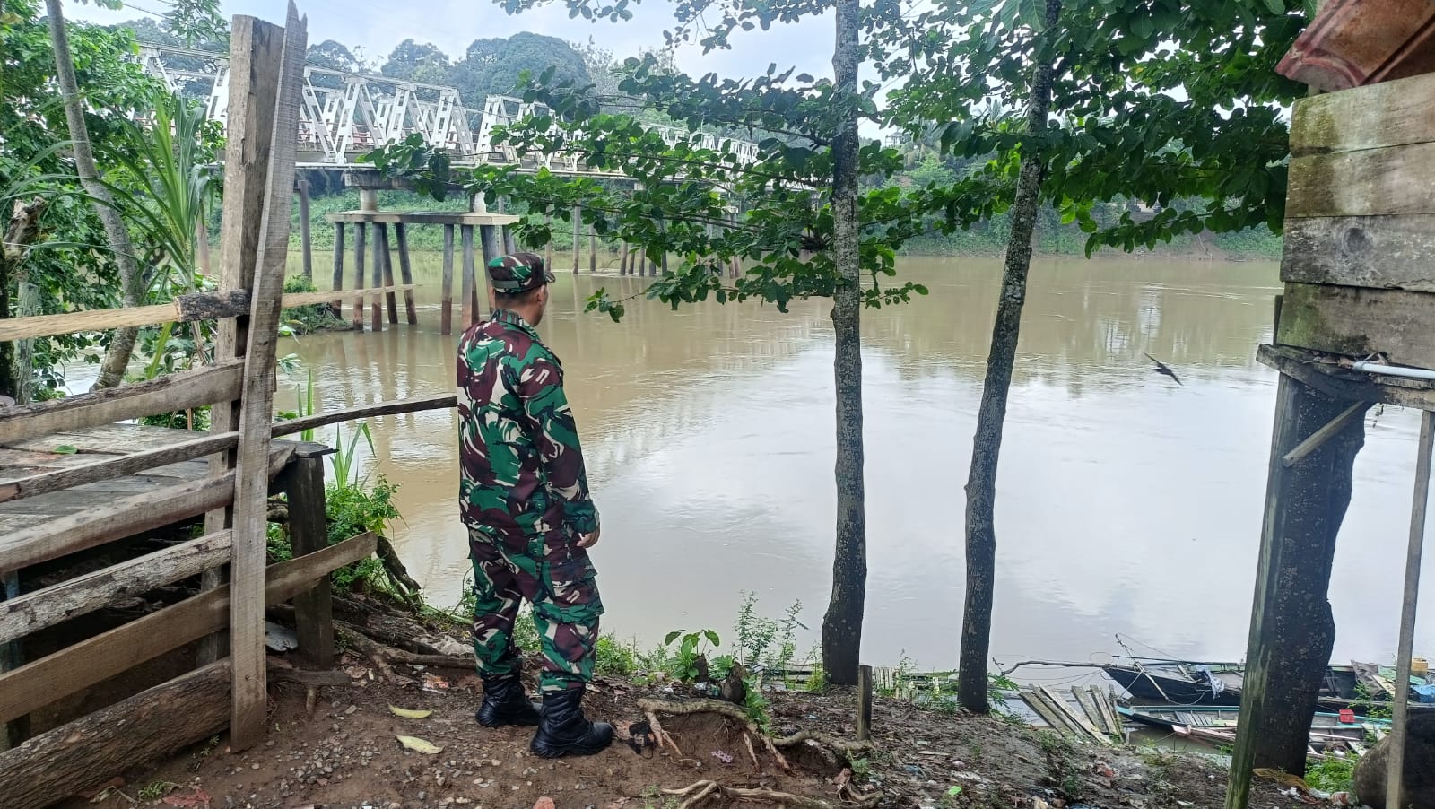 Kali ini, Sertu Antoni melaksanakan pemantauan langsung di Sungai Muara Lakitan, guna memastikan kondisi air tetap dalam batas normal serta memberikan peringatan dini apabila terjadi peningkatan debit air yang signifikan.