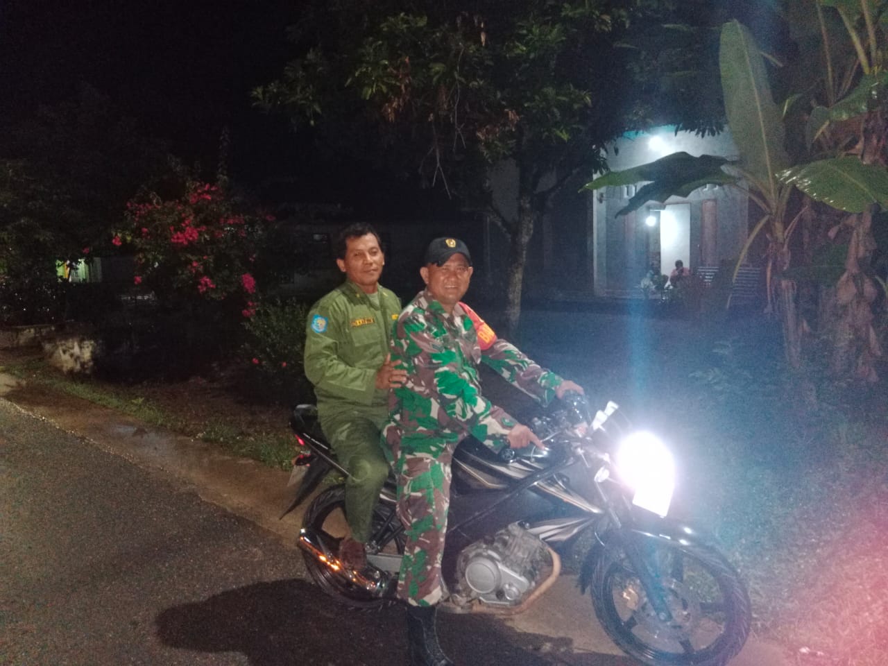 Babinsa Koramil 406-07/Jayaloka Bersama Hansip Desa Laksanakan Siskamling Jaga Stabilitas Keamanan di Kecamatan Sukakarya