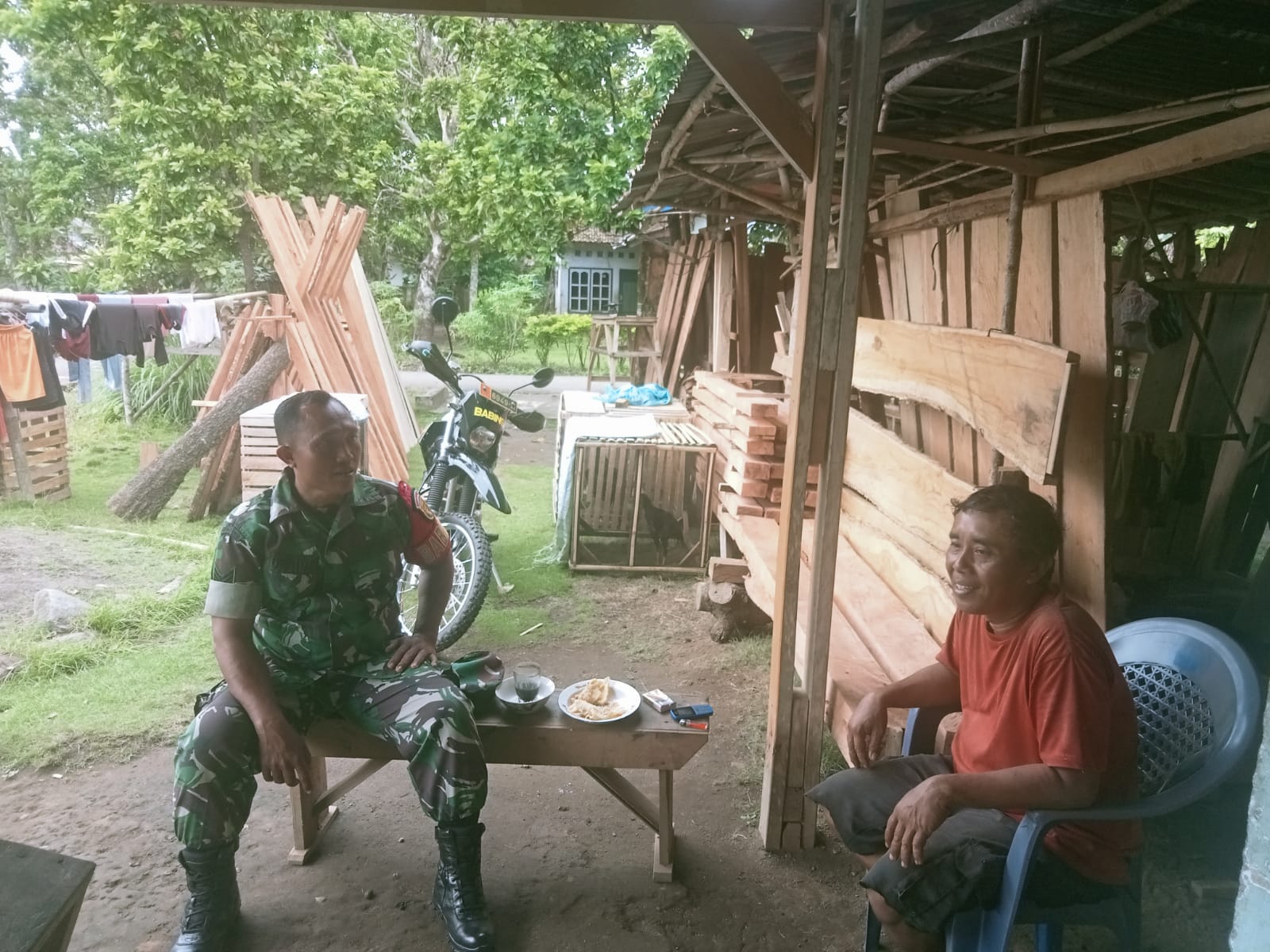 Babinsa Koramil 406-09/Terawas, Serka Supaidi melaksanakan kegiatan komunikasi sosial (Komsos) bersama warga binaan di Desa Sukamaju, Kecamatan Sumber Harta, Kabupaten Musi Rawas, Kamis (25/9/2025).