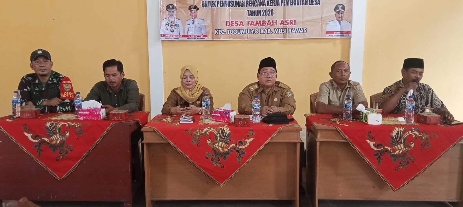 Selasa, 30 September 2025 pukul 08.00 WIB bertempat di Balai Desa Q1 Tambah Asri, Kecamatan Tugumulyo, Kabupaten Musi Rawas, Babinsa Koramil 406-06/Tugumulyo Serda Hernando menghadiri kegiatan Musyawarah Perencanaan Pembangunan Desa (Musrenbangdes) Tahun 2025 dalam rangka penyusunan Rencana Kerja Pembangunan Desa Tahun 2026.