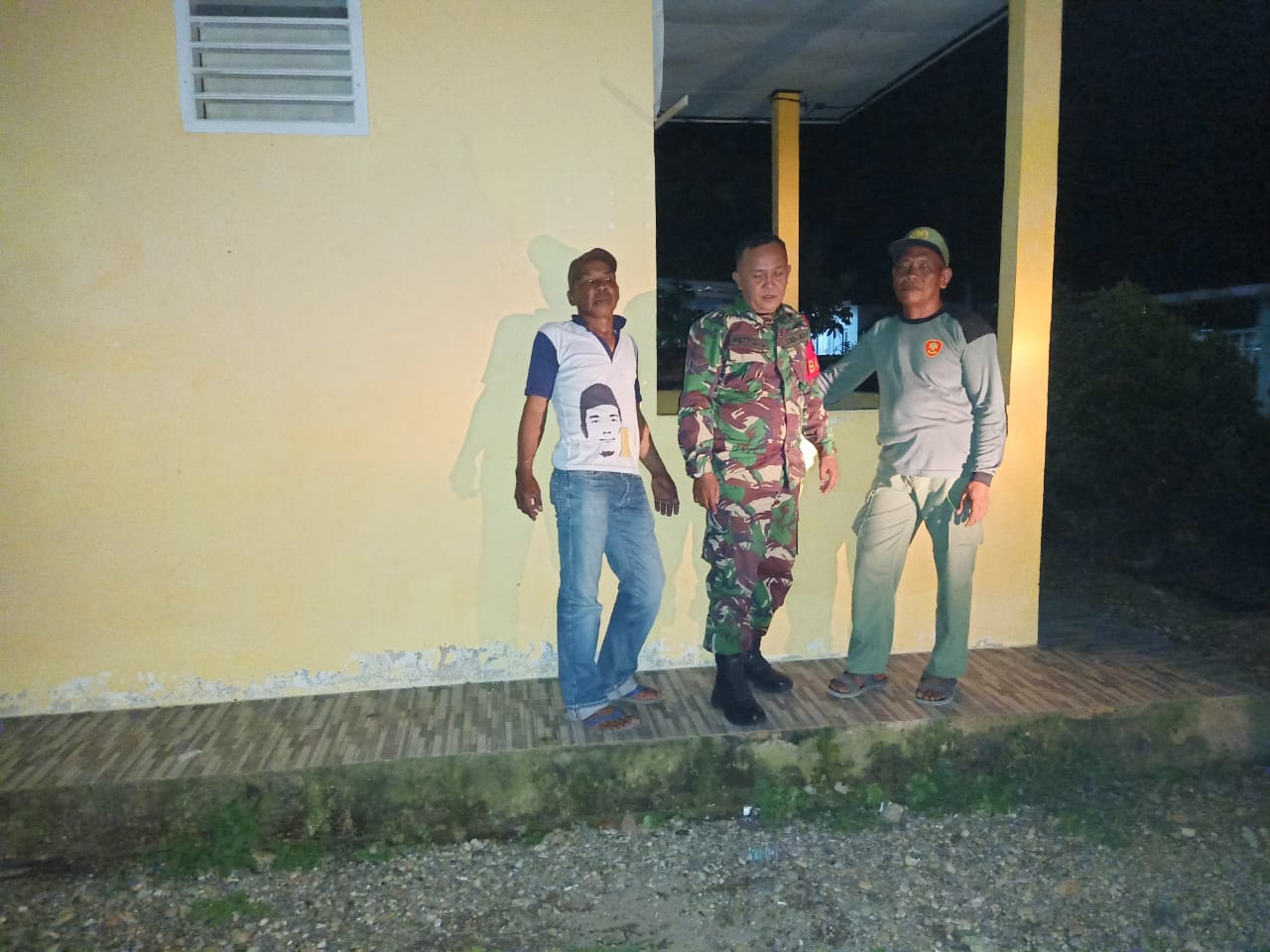 Kegiatan ini merupakan bagian dari upaya Babinsa untuk menjalin kedekatan dengan masyarakat sekaligus memantau kondisi keamanan lingkungan secara langsung. Sertu Petrizal tampak aktif berdialog dengan warga yang melaksanakan ronda malam, memberikan imbauan tentang pentingnya menjaga keamanan bersama, serta mendorong masyarakat untuk tetap waspada terhadap potensi gangguan kamtibmas.