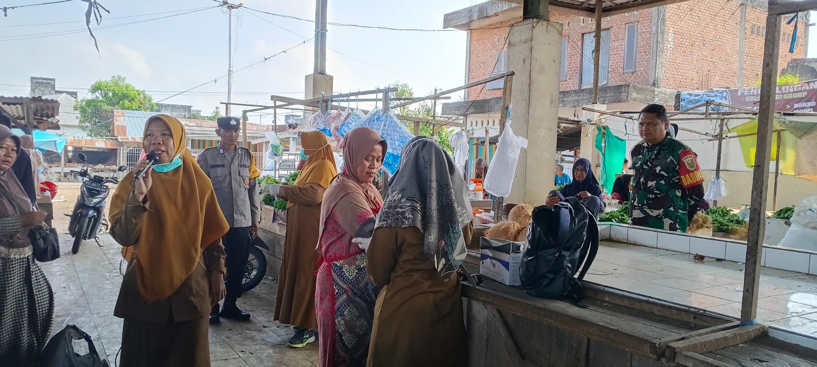 Dalam kesempatan tersebut, Babinsa turut membantu tenaga kesehatan dalam memberikan imbauan kepada para pedagang dan pengunjung pasar agar berpartisipasi dalam pemeriksaan kesehatan, serta tetap menjaga pola hidup bersih dan sehat.