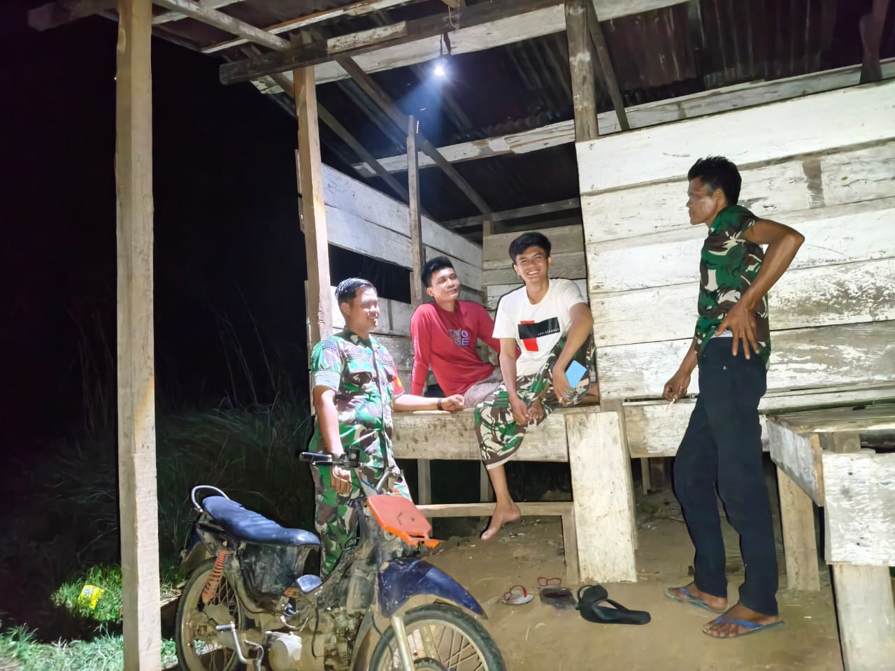 Babinsa Koramil 406-05/Muara Kelingi Laksanakan Ronda Malam dan Sosialisasi Bahaya Narkoba di Desa Pelawe