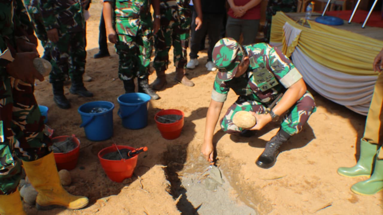 Komandan kodim 0406/LubukLinggau hadiri acara peletakan batu pertama pembangunan koperasi merah putih di desa Muar rengas