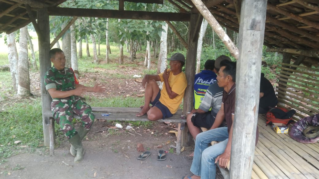 Babinsa Koramil 406-09/Terawas, Sertu Susnadi melaksanakan kegiatan komunikasi sosial (Komsos) bersama warga binaan di Desa Sumber Asri, Kecamatan Sumber Harta, Kabupaten Musi Rawas, Selasa (28/10/2025).