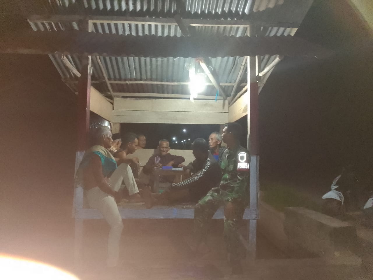 Dalam pelaksanaannya, Sertu Efrilandi turut menyambangi pos ronda serta memberikan imbauan kepada warga agar selalu waspada terhadap kemungkinan gangguan keamanan di lingkungan sekitar.