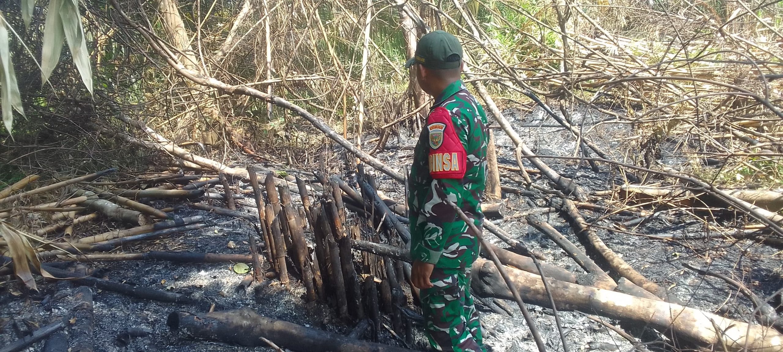 Kebakaran tersebut diketahui terjadi di area lahan perkebunan milik warga. Mengetahui hal itu, Babinsa bersama perangkat desa dan masyarakat setempat segera bergerak cepat melakukan pemadaman dengan peralatan seadanya untuk mencegah api meluas ke area pemukiman warga.