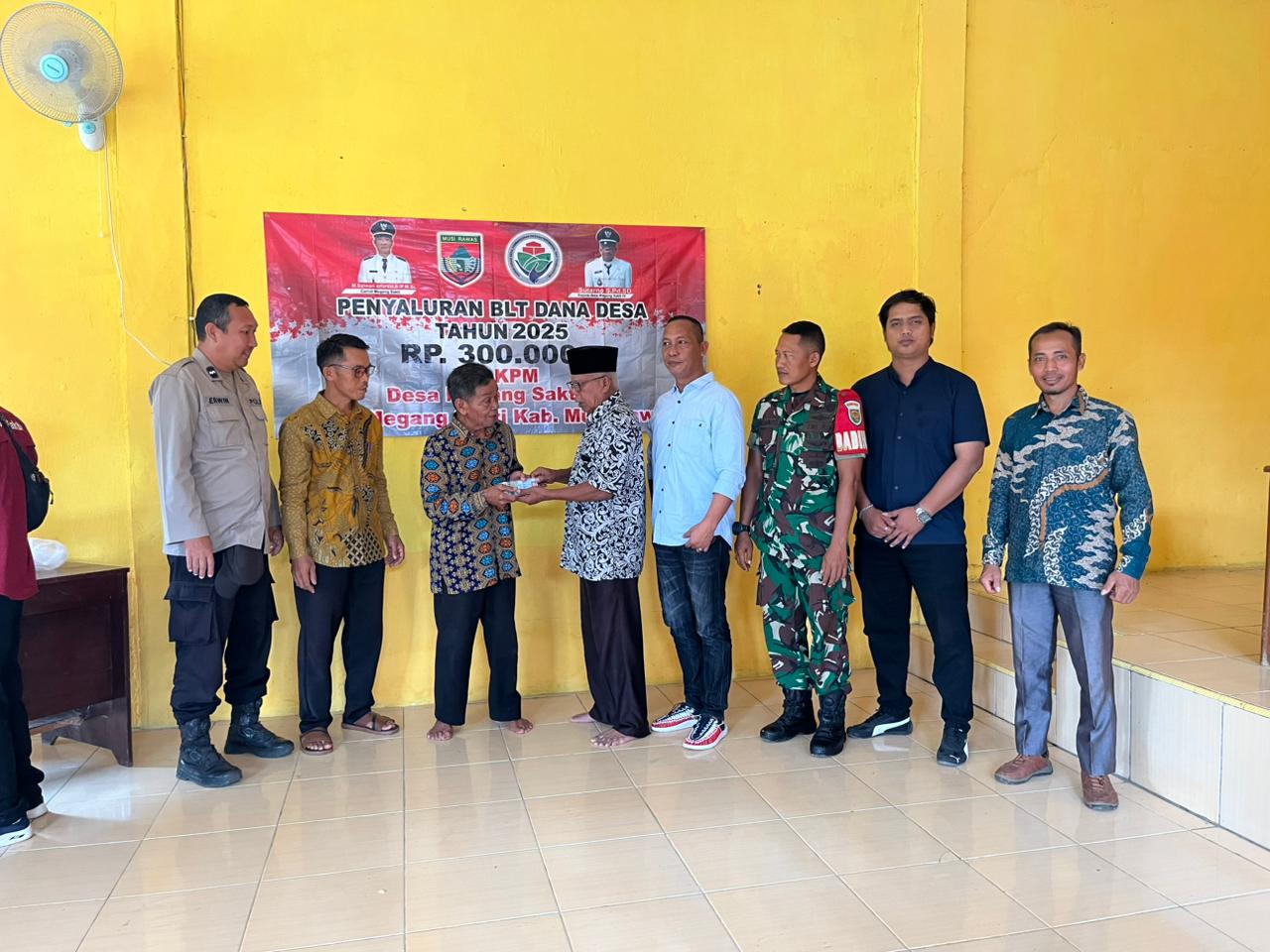 Babinsa Koramil 406-04/Muara Lakitan Sertu Tugianto menghadiri undangan kegiatan pembagian Bantuan Langsung Tunai (BLT) untuk bulan Juli, Agustus, dan September di Desa Megang Sakti IV, Kecamatan Megang Sakti, Kabupaten Musi Rawas.