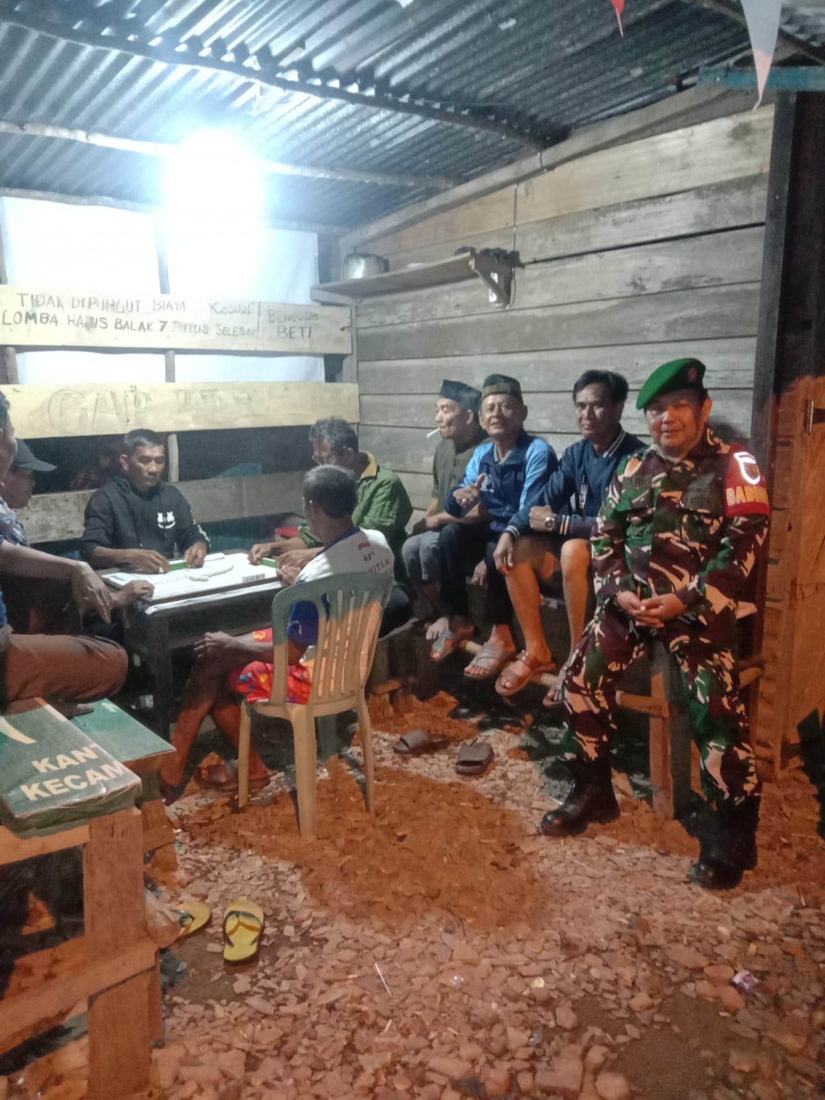 Kegiatan patroli yang dilaksanakan pada malam hari ini bertujuan untuk memantau situasi keamanan lingkungan serta memberikan motivasi kepada warga agar tetap aktif dalam kegiatan ronda malam. Dalam kesempatan tersebut, Sertu M. Dahri juga berkoordinasi dengan perangkat desa dan petugas jaga malam terkait langkah-langkah pencegahan terhadap potensi gangguan kamtibmas.