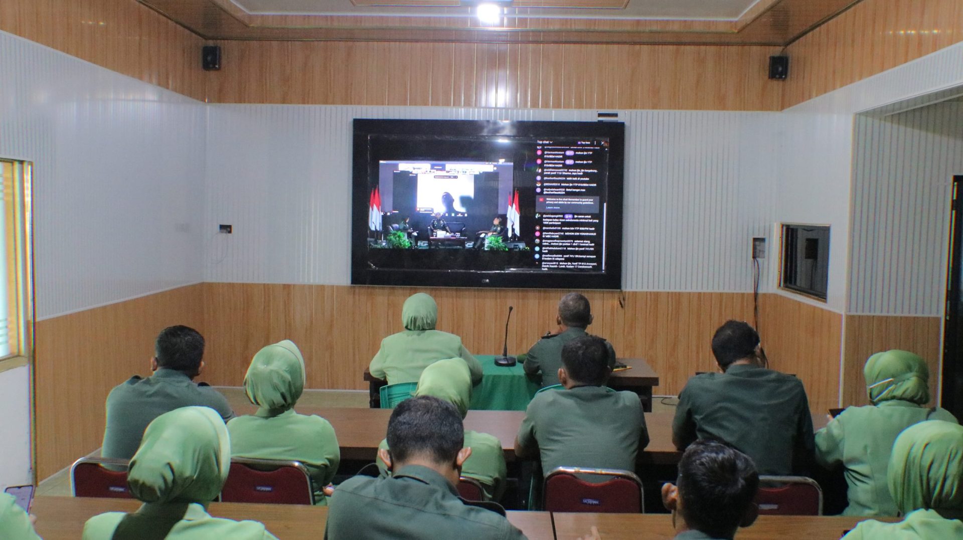 Kepala Staf Kodim (Kasdim) 0406/Lubuklinggau Mayor Inf Chairul Ansori, didampingi oleh Ibu serta seluruh Perwira dan perwakilan Persit Kodim 0406/Lubuklinggau, mengikuti Video Conference (Vicon) Talkshow Bintal Ideologi yang diselenggarakan oleh Mabesad. Kegiatan tersebut berlangsung di Ruang Yudha Makodim 0406/Lubuklinggau.
