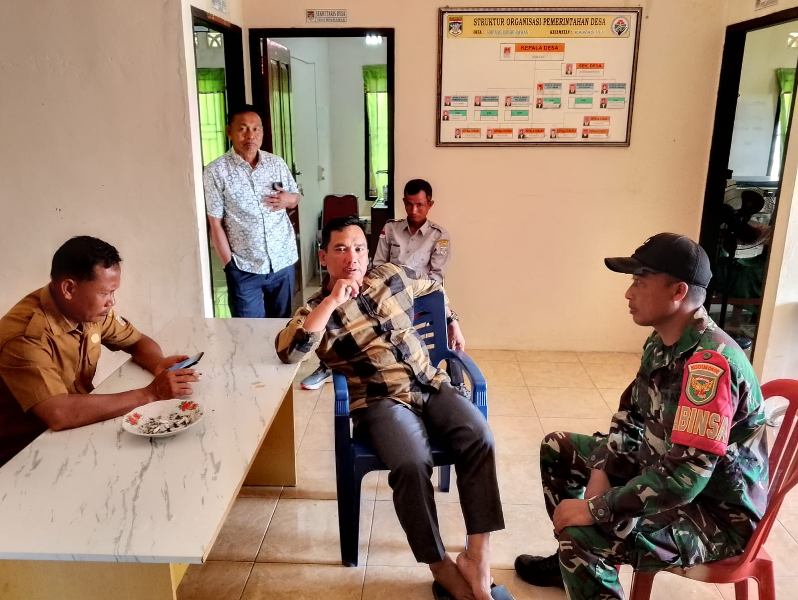 Babinsa Koramil 406-01/Rawas Ulu, Sertu Jajang Suhendra, melaksanakan kegiatan Komunikasi Sosial (Komsos) dengan warga Desa Simpang Nibung, Kecamatan Rawas Ulu, Kabupaten Musi Rawas Utara.