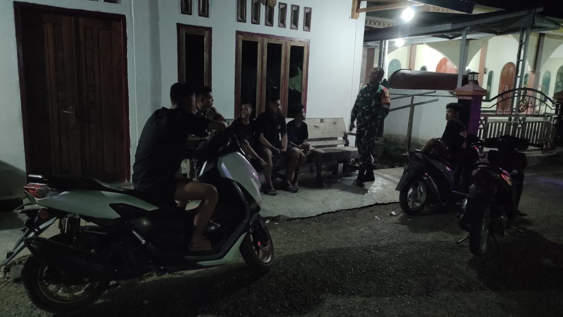 Dalam kesempatan tersebut, Serda H. Angga menyambangi pos ronda, berdialog dengan warga yang sedang melaksanakan tugas jaga, serta memberikan imbauan agar masyarakat terus meningkatkan kewaspadaan terhadap potensi gangguan kamtibmas.