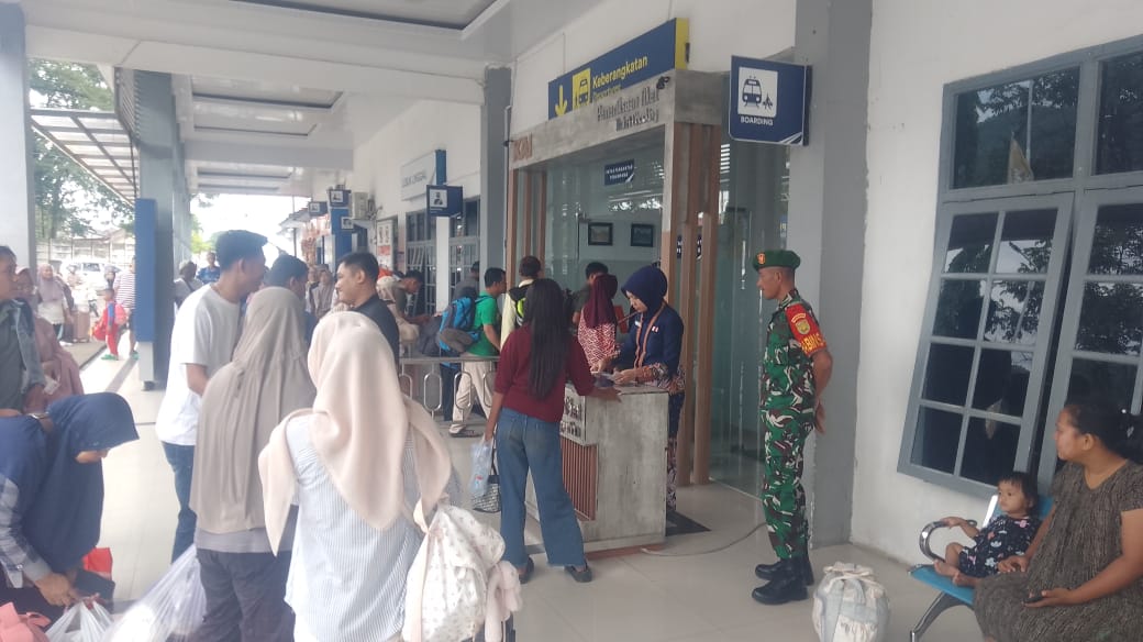 Lensa Garuda – Lubuk Linggau Dalam rangka memastikan kelancaran, keamanan, dan kenyamanan masyarakat yang melakukan perjalanan perayaan Natal 2025 dan Tahun Baru (Nataru) 2026, Babinsa Koramil 406-08/Lubuk Linggau, Serda Toni Narianto, melaksanakan tugas pengamanan di Pos PAM Nataru yang berlokasi di Stasiun KAI Kota Lubuk Linggau,