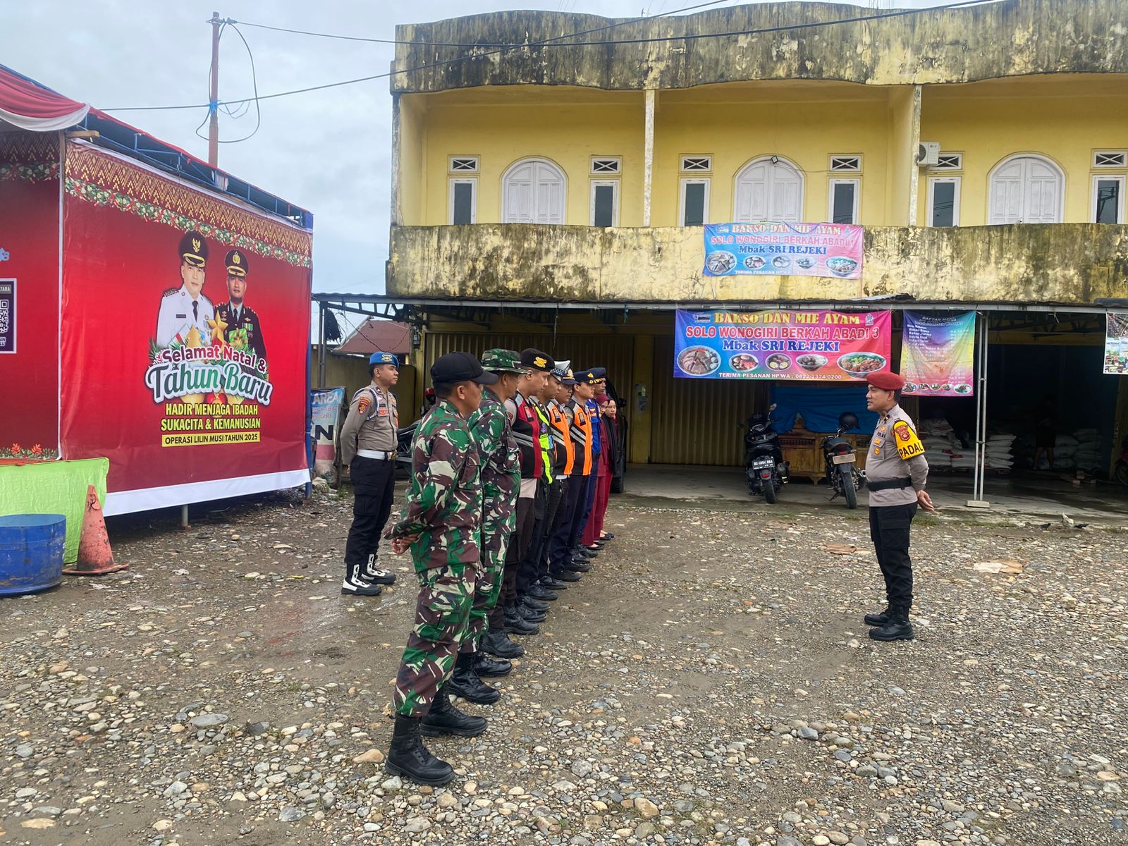 Serda Bayu Anggara selaku Babinsa Koramil 406-01/Rawas Ulu melaksanakan kegiatan apel pengamanan Natal dan Tahun Baru (Pam Nataru) yang bertempat di Pos Pam Simpang Bundo Kandung, Kelurahan Pasar Surulangun, Kecamatan Rawas Ulu, Kabupaten Musi Rawas Utara.