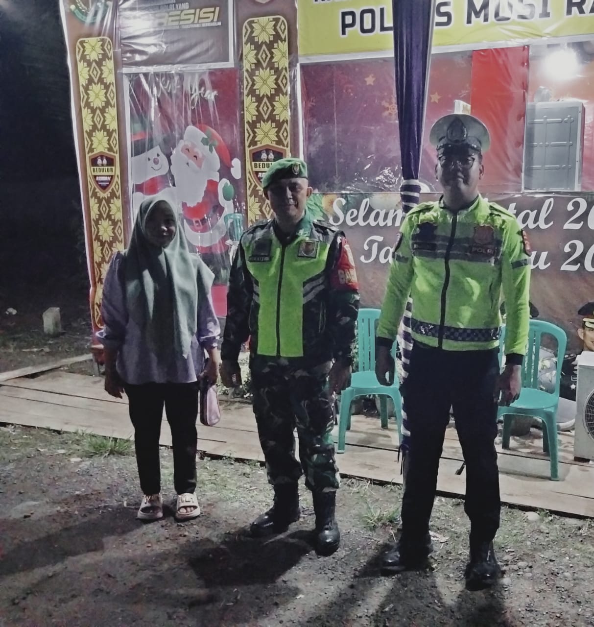 Lensa Garuda-Musi Rawas, Selasa 30 Desember 2025, Dalam rangka menjaga keamanan dan kelancaran arus lalu lintas selama perayaan Natal dan Tahun Baru (Nataru), Babinsa Koramil 406-05/Muara Kelingi, Sertu Hadi Marta, melaksanakan kegiatan monitoring di Pos Pengamanan Nataru Simpang Semambang, Kecamatan Tuah Negeri, pada Senin malam.