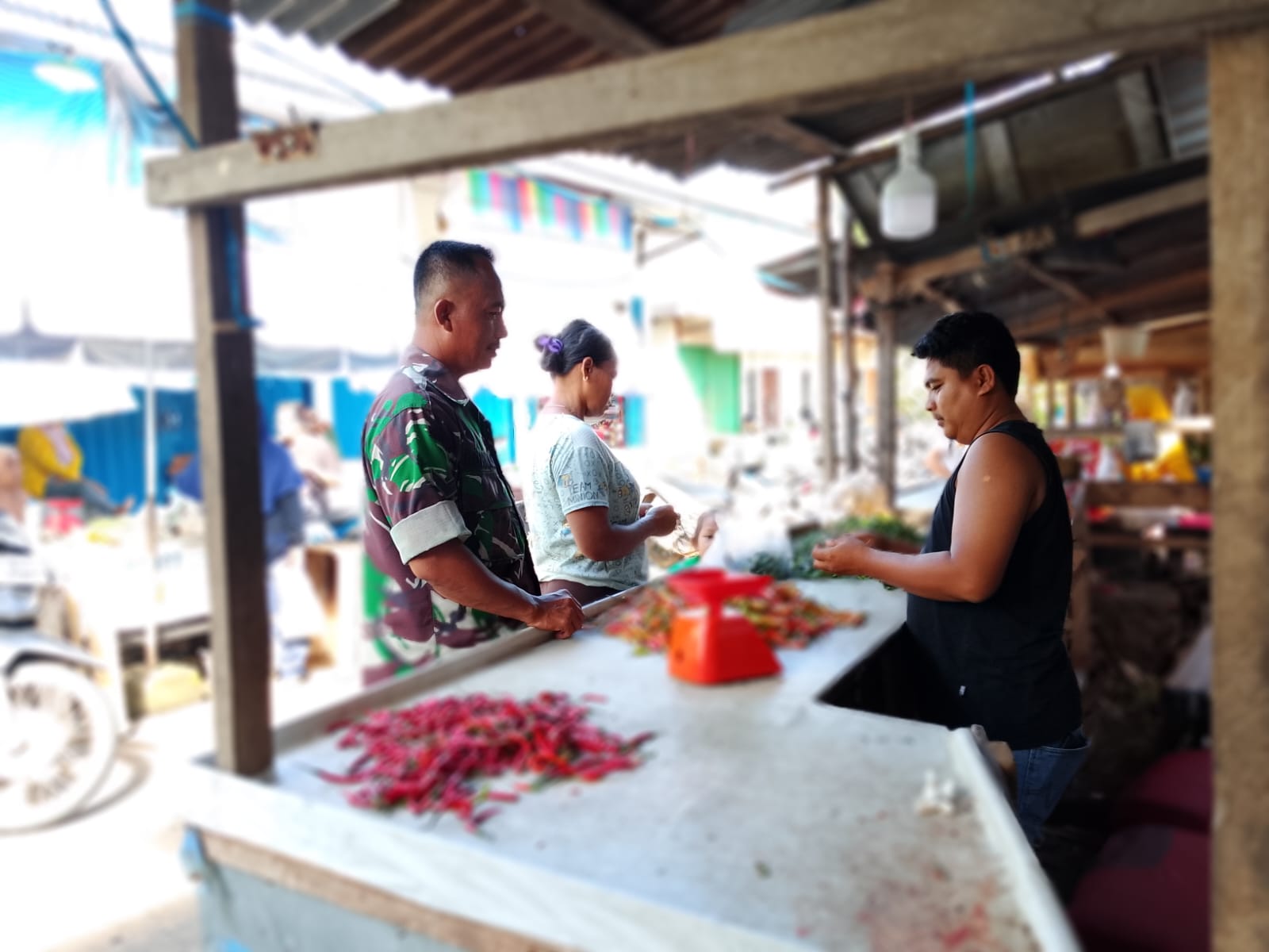 Selain itu, Babinsa juga mengimbau para pedagang agar selalu menjaga ketertiban, kebersihan lingkungan pasar, serta meningkatkan kewaspadaan terhadap potensi gangguan keamanan.