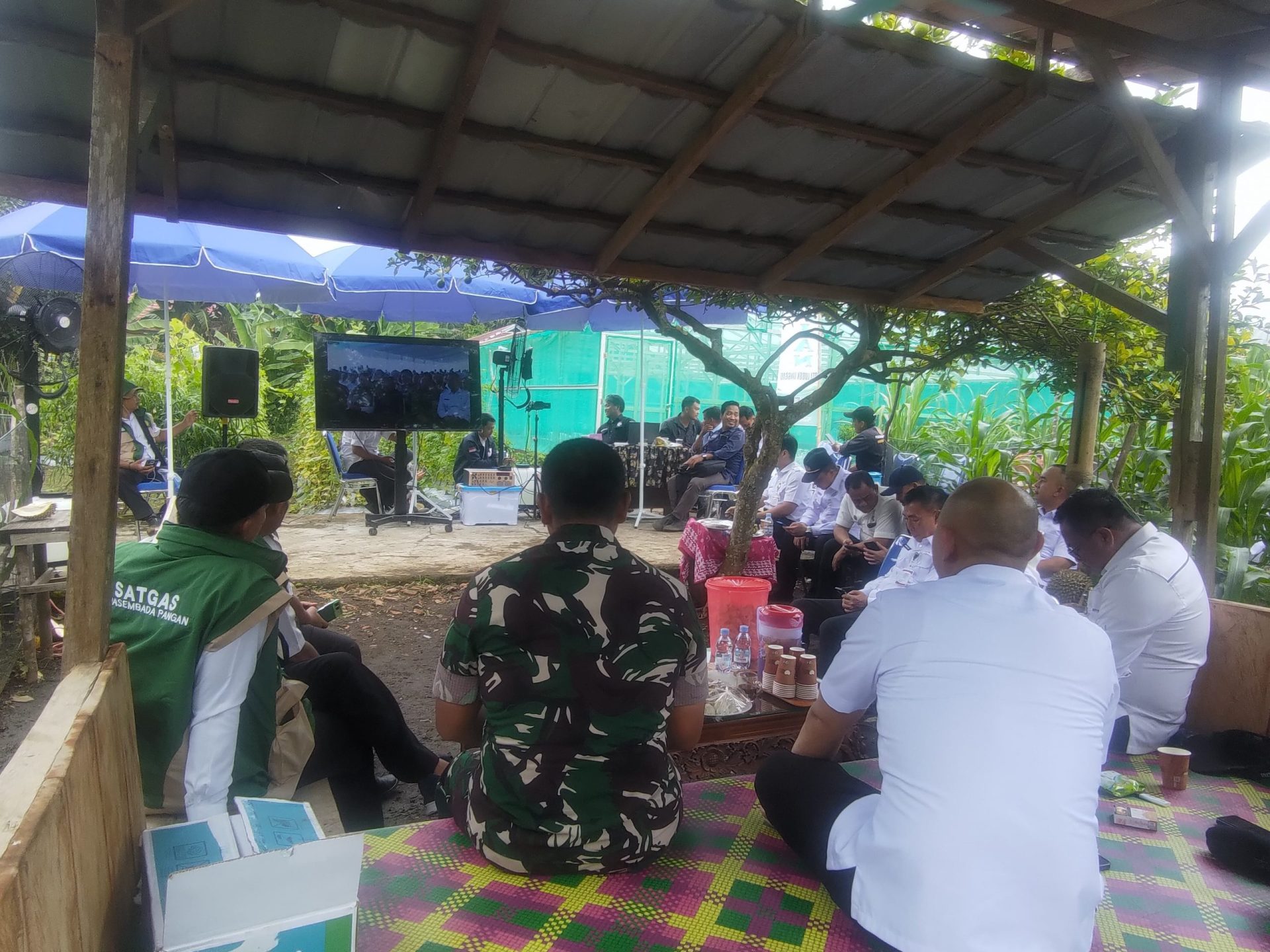 Dandim 0406/Lubuklinggau Letkol Inf Danny Steven Surbakti, S.A.P., M.M., bersama Forum Koordinasi Pimpinan Daerah (Forkopimda) Kota Lubuklinggau melaksanakan kegiatan Video Conference (Vicon) bersama Bapak Presiden Republik Indonesia dalam rangka Panen Raya Nasional dan pengumuman Swasembada Pangan, bertempat di area perkebunan Dinas Pertanian Kota Lubuklinggau.